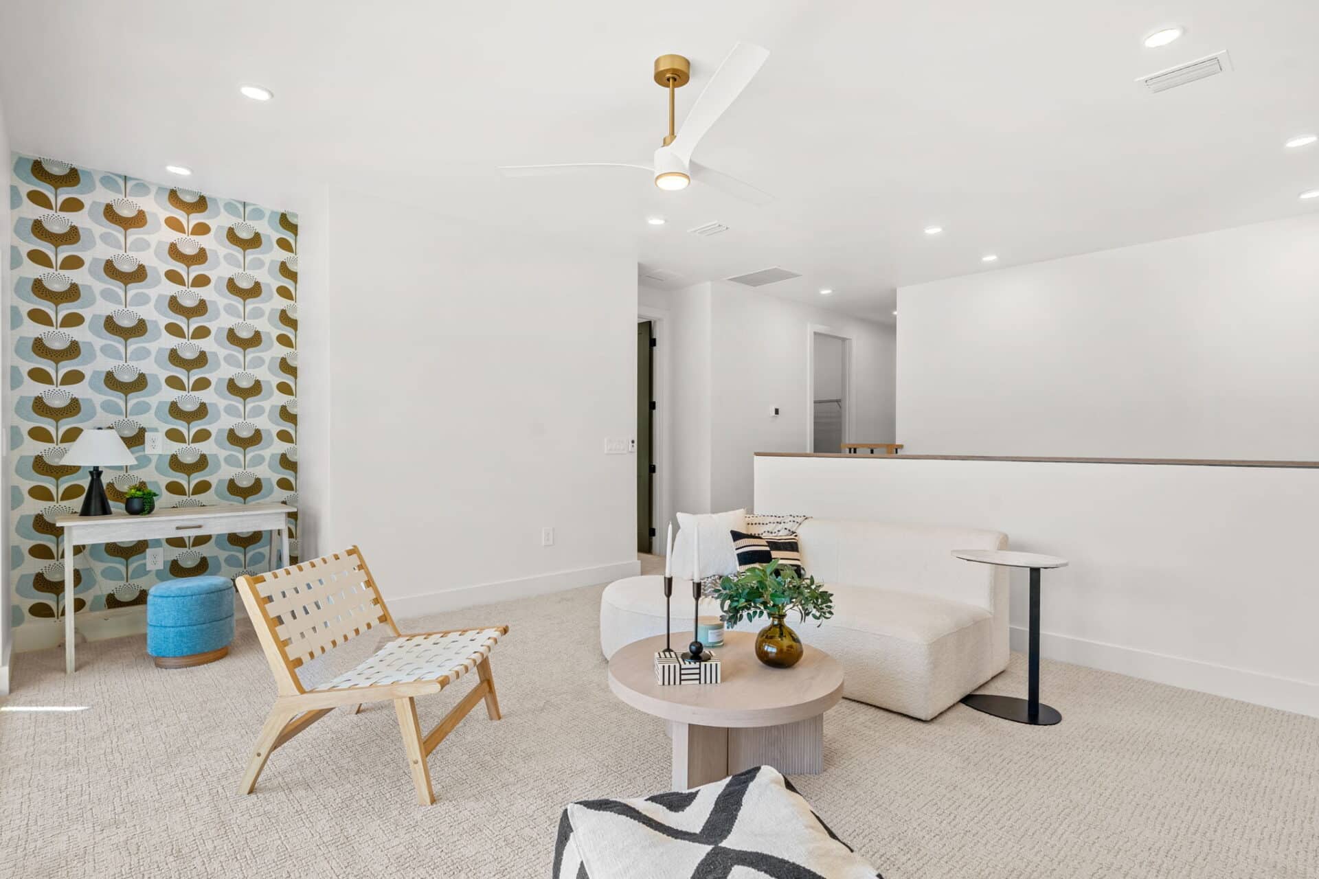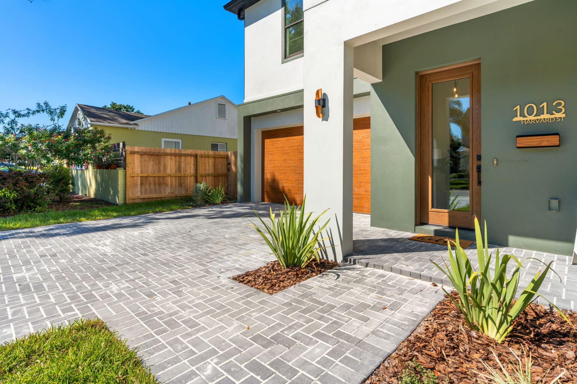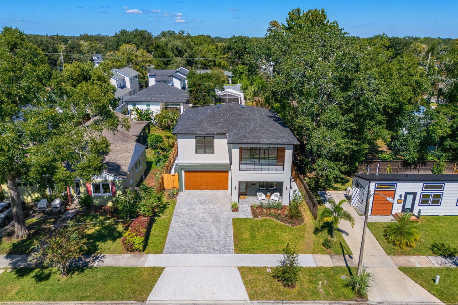 A charming front porch sets the tone for what’s inside, modern design with classic neighborhood appeal. The open main floor is anchored by a chef’s kitchen featuring an oversized island, hidden walk-in pantry with beverage fridge, and a clever secondary laundry area. A dedicated office offers the perfect space for remote work or creative pursuits, while a first-floor junior suite with private bath provides flexibility for guests or in-laws. Living and dining areas flow seamlessly toward the covered lanai and pool area.