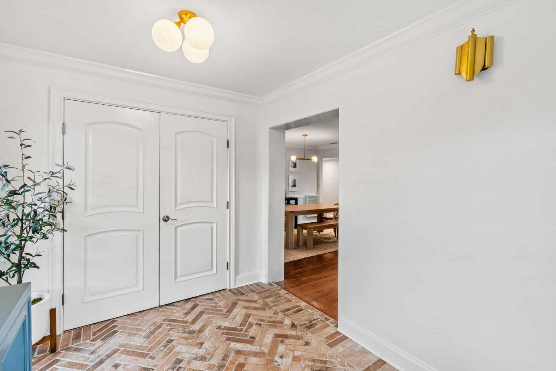 The open-concept kitchen and living room lead to a herringbone brick patio and spacious backyard, ideal for entertaining or letting kids and pets roam. The primary suite is a true retreat with a walk-in closet; not a reach-in pretending and dual vanities in a spa-like bath.