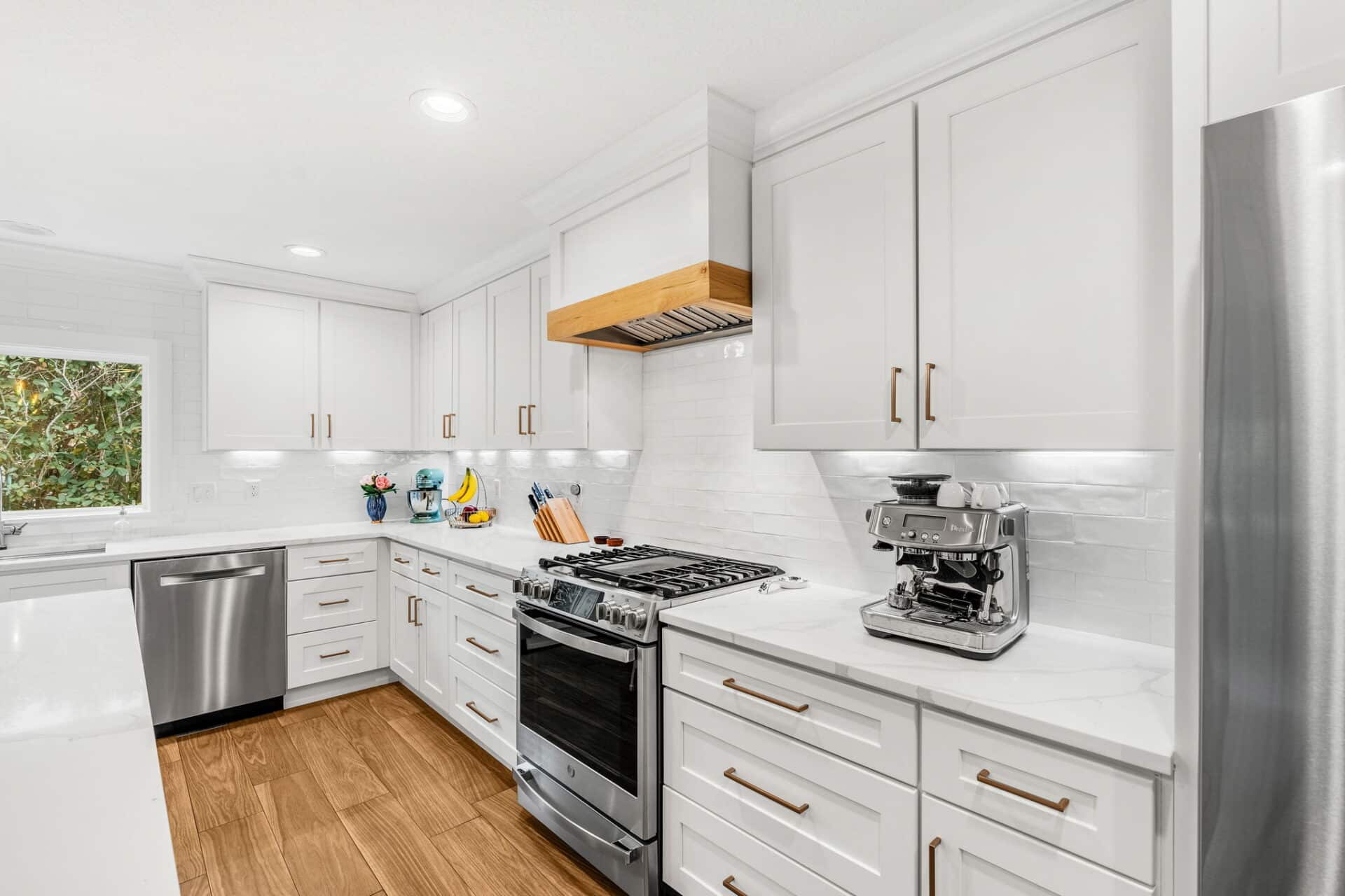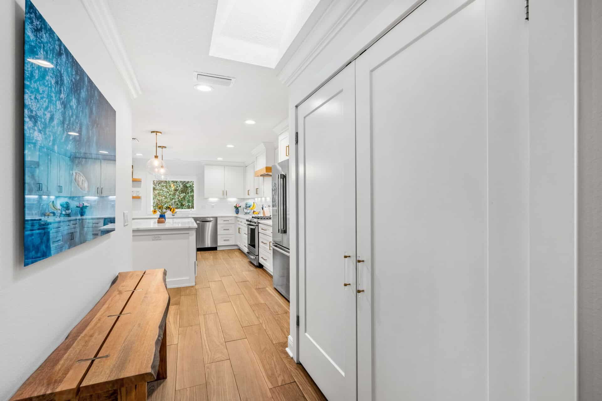 Major updates include: renovated kitchen, primary suite, and living room (2020), new roof (2021), new exterior windows (2020, 2025), new front door and entryway (2024), and all new solid-core interior doors and hardware (2025). Two additional bedrooms provide flexibility for family, guests, or home office.