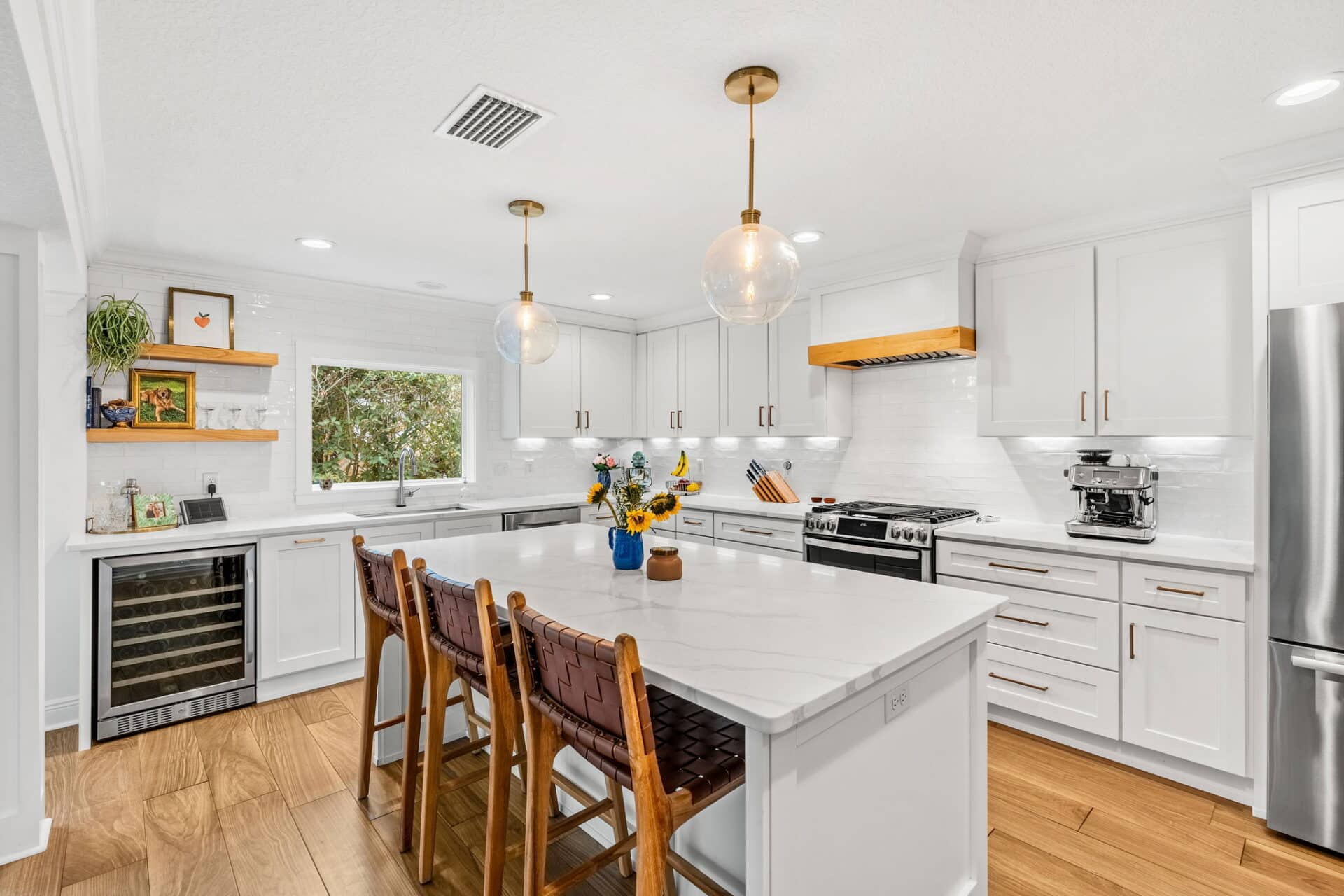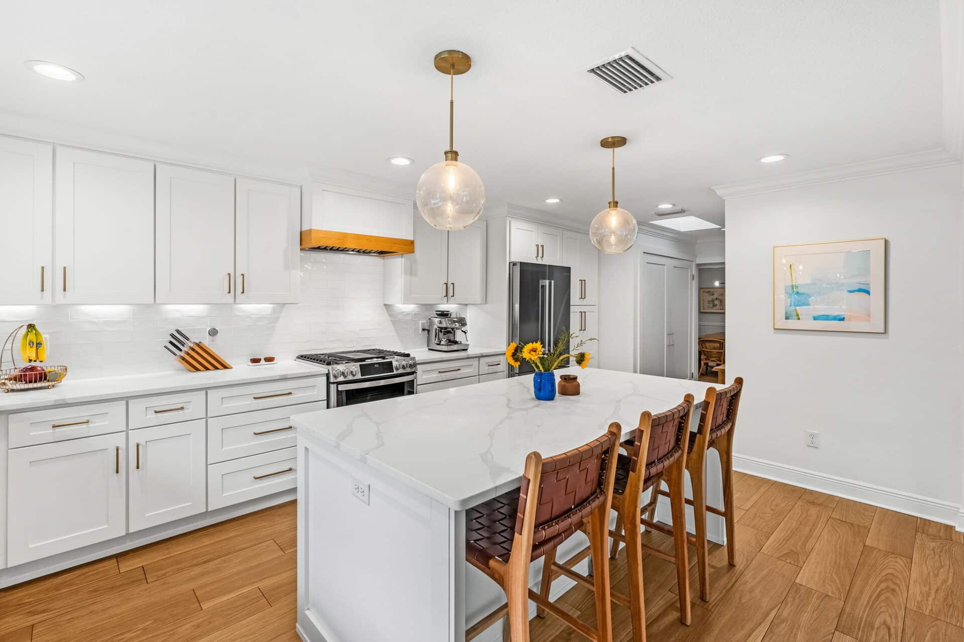 This fully renovated 3-bedroom, 2.5-bath home offers 1,855 square feet of. thoughtfully curated living space where original character meets modern sophistication. Original hardwood floors and crown molding flow seamlessly into a 2020 kitchen renovation featuring quartz countertops, custom cabinetry, gas cooktop, Bosch appliances, wine fridge, and an oversized island built for gathering.