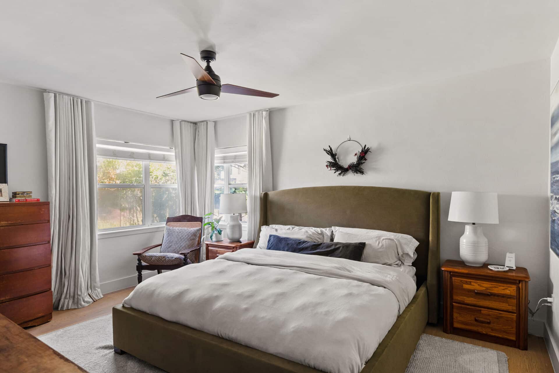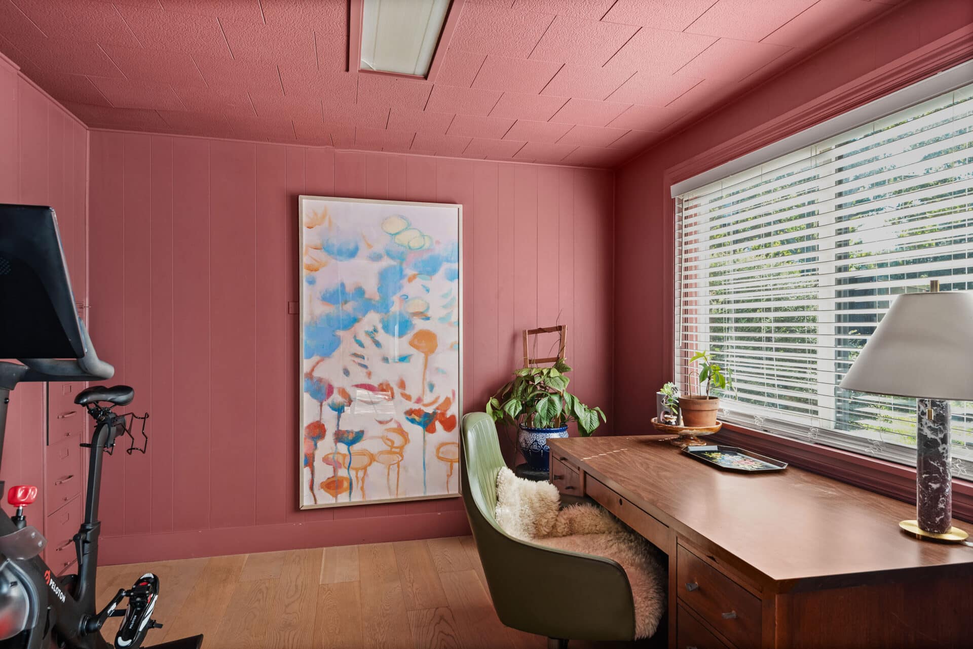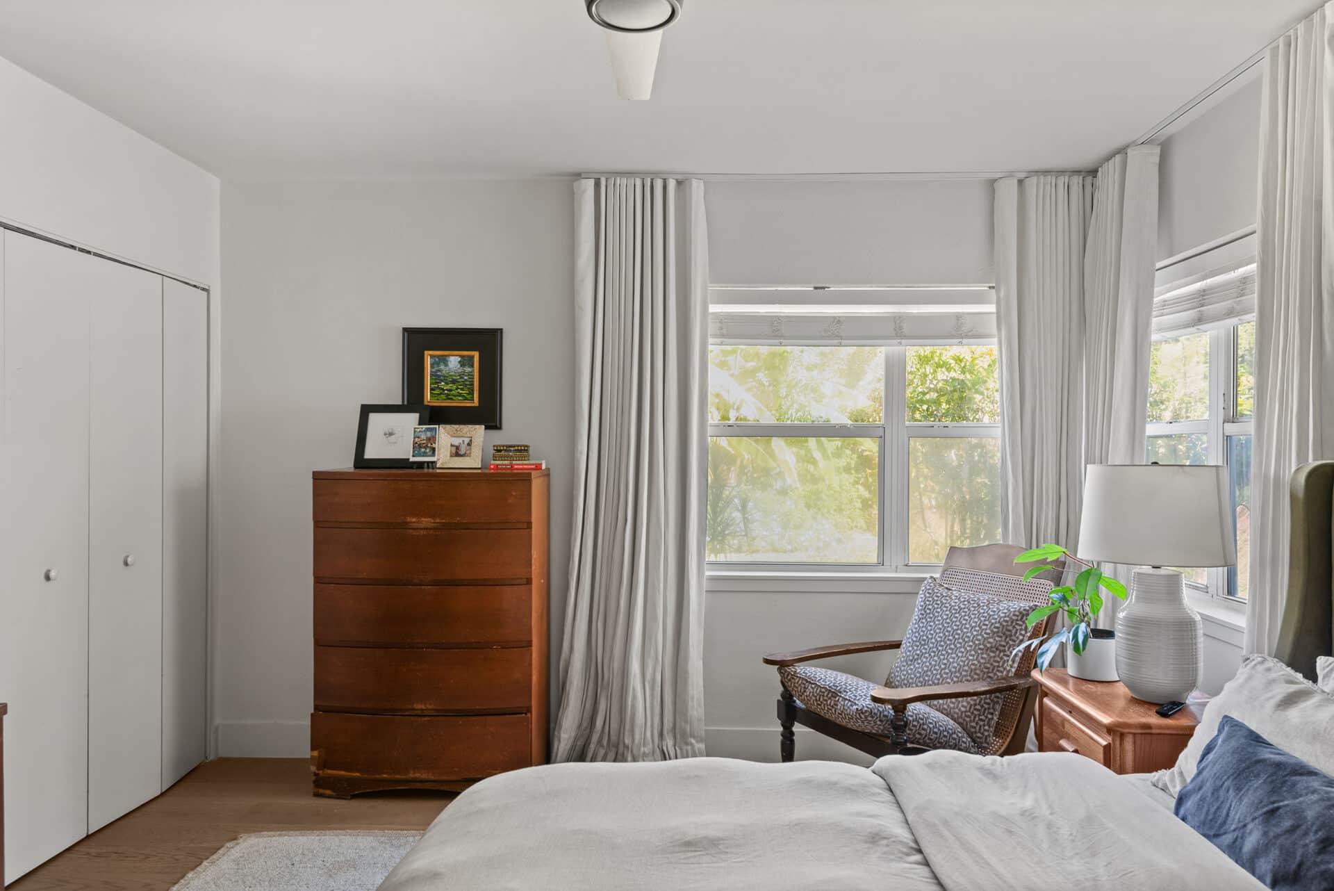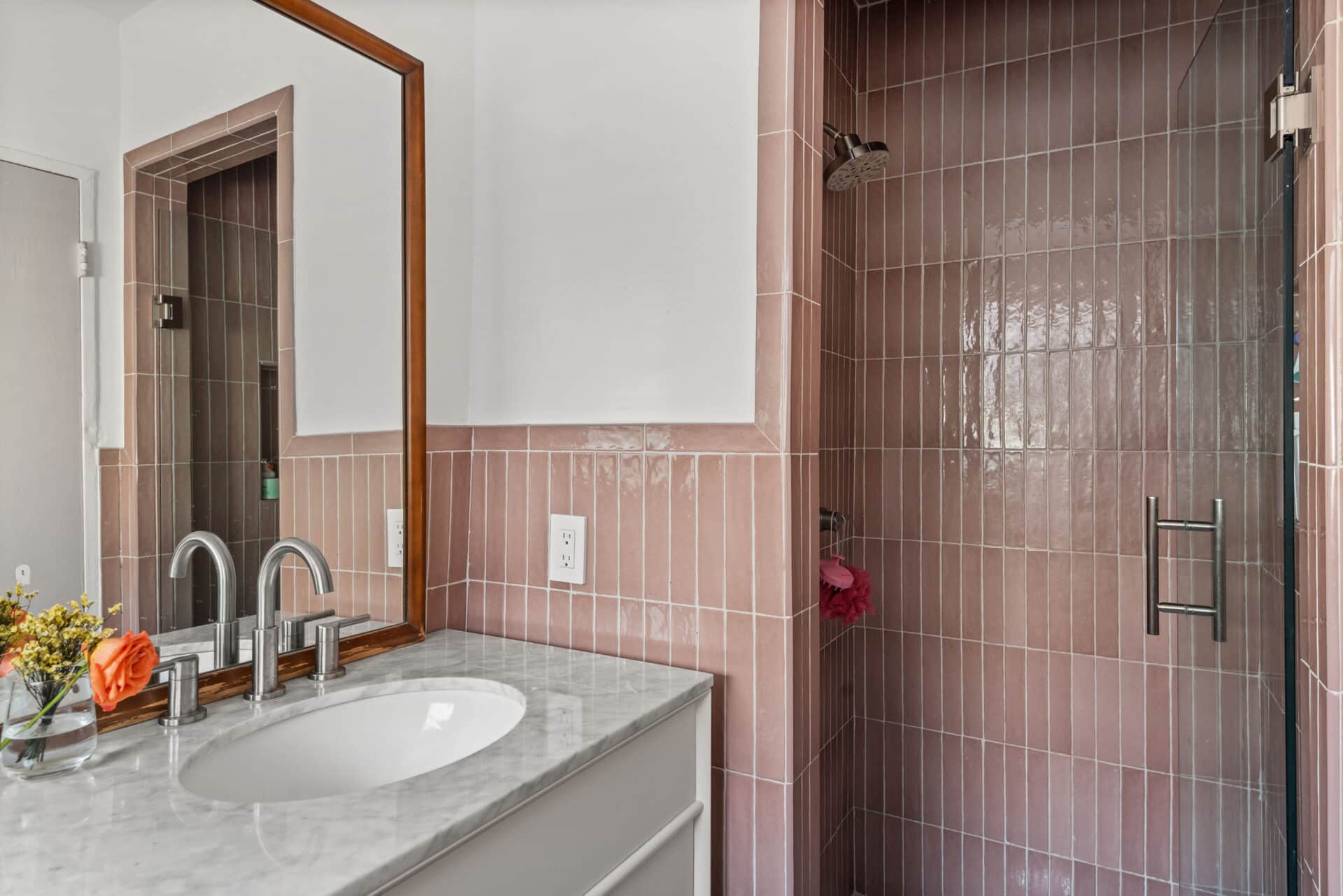 A dedicated office adds flexibility for creative work or study, while the serene bedrooms invite retreat. Every window frames greenery, infusing the home with a calming rhythm of light and shadow throughout the day. The fully remodeled bathrooms channel a designer’s eye for color and craftsmanship, each space a study in form and function.