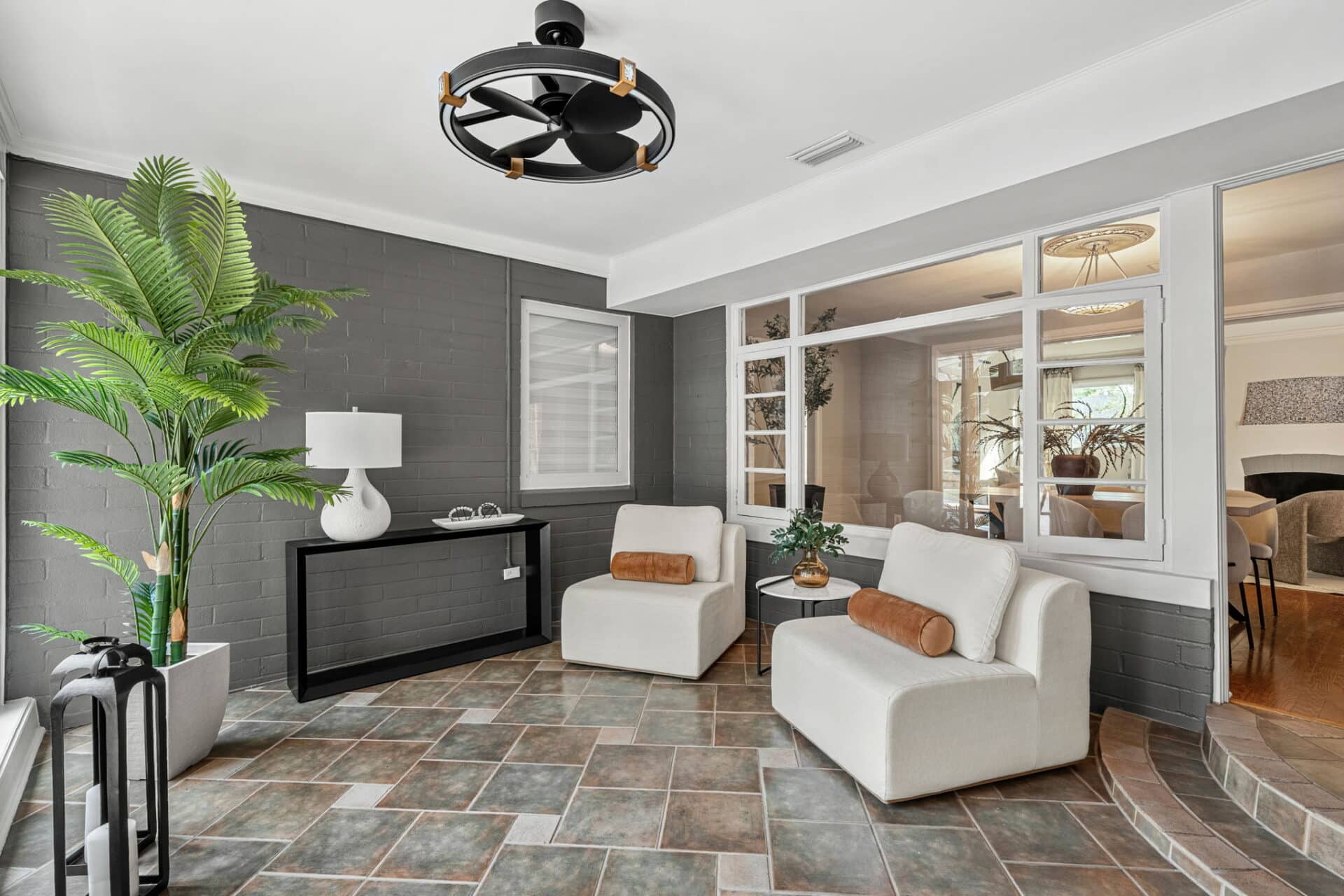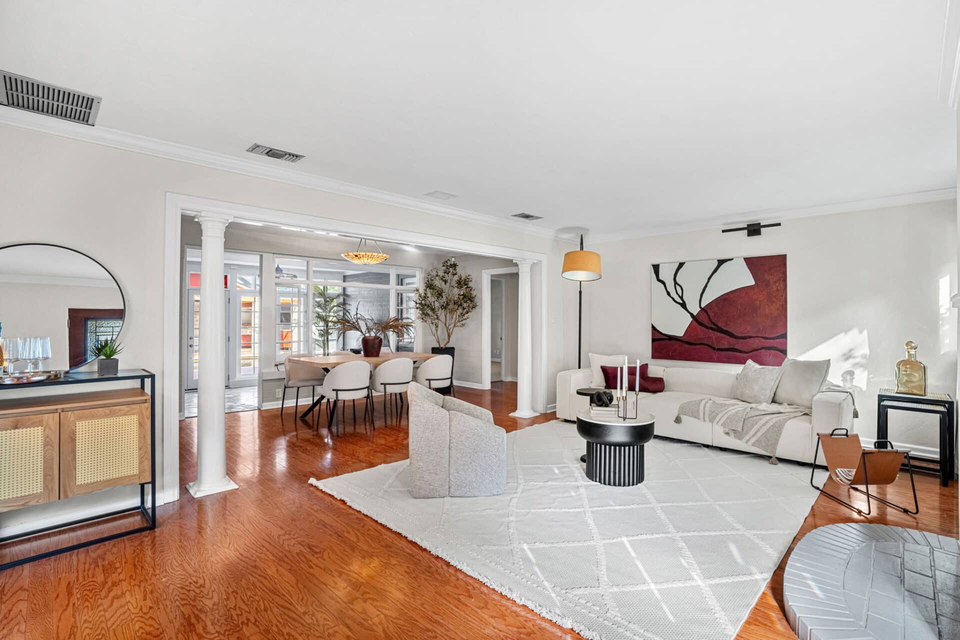 Sitting proudly on a rare double lot (.28 acres), this single-story stunner spans over 2,700 sq. ft. of thoughtfully updated living space. Four spacious bedrooms, three full bathrooms, a formal dining room, a living room with fireplace, a light-filled family room off the kitchen, and a dreamy sunroom create a home that feels as gracious as it is functional. The kitchen features knurled hardware and luxe finishes that elevate every detail.